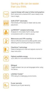 The Lifepak CR2 AED has the fastest time to shock Lifepak CR2 Fastest time to shock