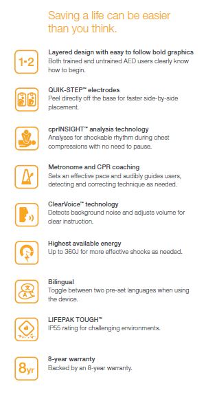 The Lifepak CR2 AED is the only AED that allows CPR during ECG rhythm analysis thereby reducing pauses between CPR and defibrillation.